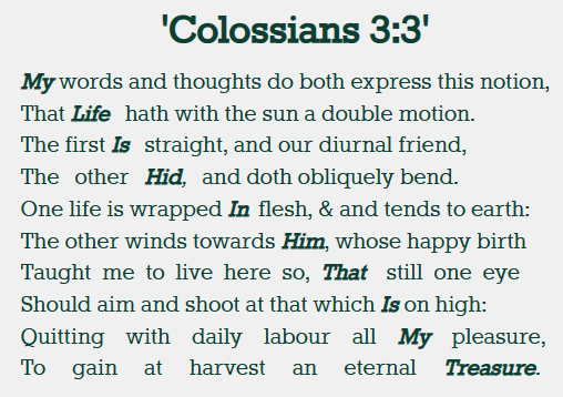 The 17th century English clergyman and poet, George Herbert, put this beautifully, such that his poetry is meant to be read both horizontally and diagonally.