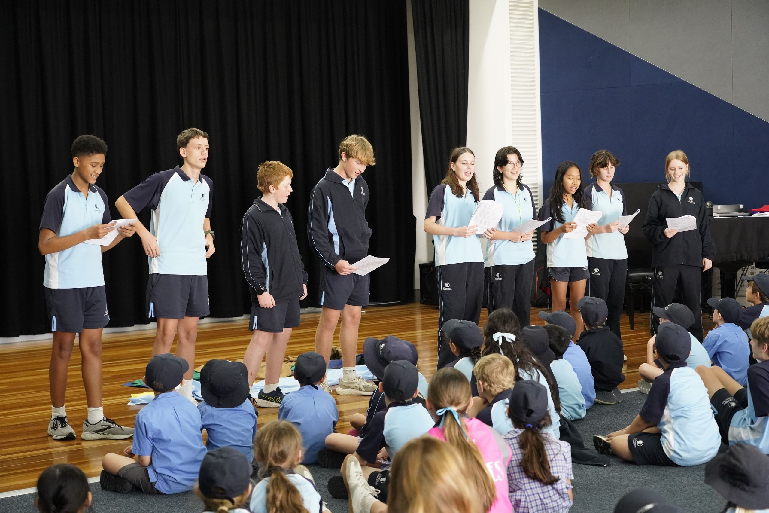 On Tuesday we gathered as a whole school to remember and celebrate the death and resurrection of Jesus. At our Easter Assembly, a group of Year 10 Drama students movingly captured the experience of Mary, the thief on the cross and Nicodemus when Jesus was crucified, all acknowledging that Jesus really was the Son of God. There were special performances by the Junior School Choir, Year 10 Dance Elective, and our Infants students who sang 'Jump for Joy'. Our Knowing God Coordinator, Mr Marriott, reminded us of the profound significance of Jesus' sacrifice and his resurrection - how great to be reminded of God's love and salvation.